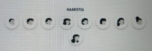 De haarstijlen waren eerst, gemillimeterd, kort stijl, kort krullend, kort warrig, schouderlengte, opgestoken krullend, en lang haar, en daar zijn nu lang krullend en boblijn als haarstijlen bijgekomen. Wat ontzettend leuk is, is dat je in dit boek het kindje ook een bril kunt geven. Dit zijn allemaal nieuwe opties die er bij alle nieuwste boeken bij blijven. Dat je het kindje  nu ook een bril kunt geven vind ik ontzettend fijn, goed en mooi, want veel kindjes met een bril moeten daar erg aan wennen en als ze dan in hun eigen boek zien hoe stoer ze zijn, geeft dat toch weer een beetje extra zelfvertrouwen.
