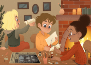 Ons nieuwste boek “Naam, Naam en Naam ontdekken een spookhuis” past uitstekend bij het stormachtige najaar en het spookachtige Halloween.