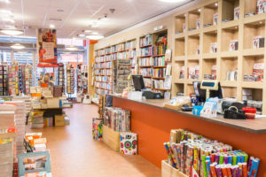 Wij zijn altijd een algemene boekhandel geweest, mijn opa verkocht boeken maar als het bijvoorbeeld regende verkocht hij weer paraplu’s, als hij ergens brood in zag verkocht hij het, ze zeggen dat ik ook wel op mijn opa lijk. Maar vandaag de dag moet je bijna ook wel want een boekhandel met alleen boeken is vrij lastig en mensen begrijpen dat ook wel. Natuurlijk krijgen wij er wel eens een opmerking over van ‘jullie verkopen minder boeken en steeds meer andere dingen’ snap ik, maar bijvoorbeeld dat ik hier in 2008 binnen kwam stond de winkel ramvol met gigantische stapels boeken, maar toen kwam ook de crisis en ga je anders inkopen, en 10 is een stapel, maar 2 of 3 op elkaar is ook een stapel, dus we zijn wel bijna hetzelfde aantal titels blijven voeren maar minder volume om kosten te drukken, dus is het op dan ligt er morgen weer nieuw. Daardoor ontstond er weer ruimte in de winkel en ga je kijken voor ander artikelen. Kantoorspulletjes hebben we altijd wel gehad en nu ook wat meer cadeauartikelen en daar doen we het ook leuk mee. Ik vind altijd een boekhandel is eigenlijk een cadeauwinkel, want 75% van de boeken die je verkoopt pak je ook in als zijnde een cadeau, en het is natuurlijk ook het mooiste cadeau dat je kunt krijgen, een boek.