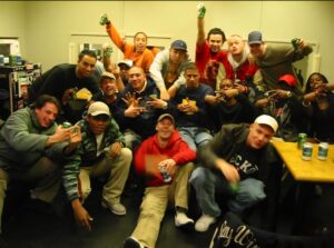 Maar was ook wel lachen want toen was het zuipen en lol maken en nu was het om 23:30 ‘hey jongens ik ga naar huis hoor want morgen komen de kinderen weer vroeg’. Nu had iedereen twee drankjes gehad en vroeger was het op z’n minst twee flessen.