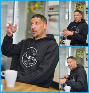 Na binnenkomst vraagt Rico of wij koffie willen. Nou geloof mij, na bijna 2uur in de auto was het aanbod van een kopje koffie goddelijk en namen we dat aanbod graag aan, waarna Rico in de weer ging met het koffie zetten. Ondertussen waren we al heerlijk Rico zijn vertelsels binnen getrokken en zaten wij te luisteren naar zijn verhaal over de Fakkelteit, die eerst in Hedon gevestigd was en nu hier in /beatbox.
