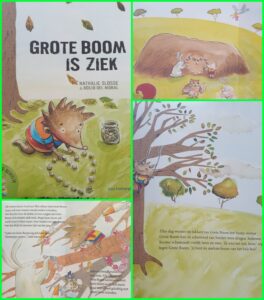 Ikzelf vind ‘Grote boom is ziek’ een prachtig boek. Het gaat over iemand die erg ziek is maar kans heeft op genezing. Mócht iemand onverhoopt toch overlijden, dan zit er nog een extra hoofdstuk in het boek bijgevoegd zodat je dat ook kunt lezen met je kind. Ik vind het echt supermooi gevonden, en heel goed uitgedacht. Het boek ontroerde mij best wel omdat het op zo’n mooie ‘kindermanier’ wordt uitgelegd maar toch ook de echte waarheid wordt verteld.