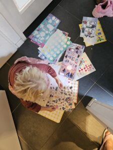 Nu de kalender vol is en Bodi dus eigenlijk geen stickers meer hoeft te plakken, merk ik wel dat ze dat elke keer nog wel graag zou willen, en heb ik een eigen stickerkaart gemaakt zodat ze gewoon lekker door kan stickeren, en het boekje staat ook nog steeds in de wc om elke keer trouw gelezen te worden.