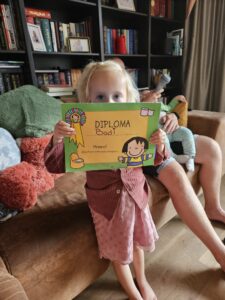 De diploma vind Bodi er ook heel mooi uitzien en ze zegt met een grote glimlach en super blij dat ze er ‘heel blij en trots mee is’.