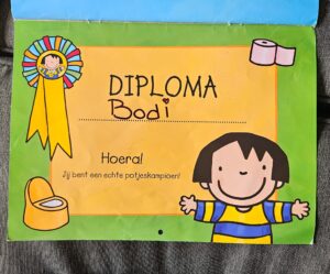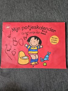 Dit kwam mede omdat wij het boekje iets aangepast hebben omdat Bodi al op de wc ging en nooit echt op het potje.