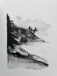 De illustraties wisselen elkaar af, van mooie zachte illustraties in kleur, naar de prachtige eeuwenoude schilderstijl die Sumi-e wordt genoemd.