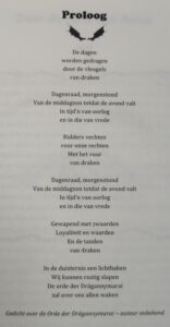 In het eerste verhaal, ‘Door de ogen van Jacco’, lezen we hoe Jacco alles ziet en leert kennen in de wereld van Jill, Drägan Duma dus, een parallelle wereld. Jacco en Nina komen terecht in het dorp DragonStone, genoemd naar de drakenclan waar Jill toe behoort. Ze komen te wonen in de burcht. Het tweede verhaal, ‘Keuze’ geeft mij weer precies het gevoel dat ik me herinner van de serie, liefde en ontzag. Dit verhaal wordt verteld vanuit het ei van Libertalia, Jills draak. ‘Belofte‘ is het verhaal dat je eigenlijk liever niet had willen lezen, de liefde maar ook een zo’n intens verdriet weet Patty in het verhaal te leggen, dat je het werkelijk in je lezershart voelt. De tekeningen in de bundel zijn van Patty zelf, en vertellen op hun eigen manier waar dat verhaal over gaat, heel tof en eigen gedaan.
