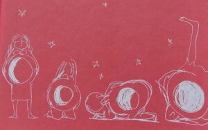 Polly laat (zoals ik al zei) in haar tekeningen perfect zien wat moederschap precies is, moeilijk, verrassend, beangstigend, slopend maar vooral intens mooi en genieten.