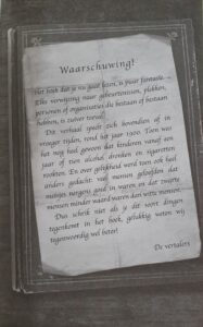 De cover is onwijs tof, heel serieus maar ook weer niet, snap je hoe ik bedoel? Alles dat erop staat is een beetje op de oude manier gekleurd of getekend en ook de lettertypen voelen oud aan. Wanneer je het boek openslaat en de binnenkant van de omslag en schutbladen ziet kun je nog even extra genieten van dit alles, want hier zie je de catalogus van Walker and Dawn schitteren. Wanneer je verder het boek gaat verkennen op weg naar bladzijde één om te gaan lezen, kom je eerst nog een waarschuwing tegen over het verhaal zelf, en het komt grappig over en het ziet er tof uit….