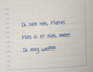 Over de begrafenis, het overlijden van Mira en de tijd van behandeling wordt minder verteld dan de tijd erna, de tijd erna is namelijk Marcel zijn leven zonder Mira en hoe hij dat beleefd en daar gaat dit boek over. Het is een verdrietige tijd vol volwassenen die er niks van snappen, en dat maakt dit boek erg verdrietig.