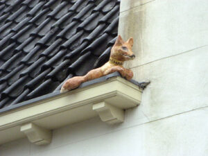 Joris Baudoin studeerde in ’84 af aan de academie voor beeldende kunsten Sint-Joost Te Breda. Je kunt wel zeggen dat Baudoin een veelbewogen leven heeft als kunstenaar, maar zeker ook als iemand die op veel plaatsen heeft gewoond. Na 34 keer verhuizen bouwde hij namelijk het huis waar hij nu in woont. Stilzitten is dus zeker niet aan hem besteed. Wat ik zelf heel tof vind, zijn de gootspoken van Baudoin. Baudoin zet hiermee een eeuwenoude traditie voort door met de terrazzo beeldjes de karakteristieke eigenschappen van de bewoners of het pand te ‘verwoorden’.