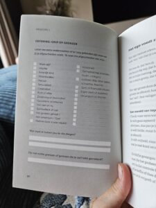 Heel eerlijk zijn sommige opdrachten best lastig, want er staat geen échte uitleg bij, óf het waren ‘moeilijke’ vragen waar ik echt even over moest nadenken. Maar ik legde het boek dan gewoon even weg en ik gaf het even tijd om te sudderen.