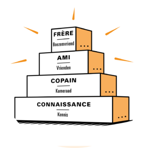 Er wordt uitgelegd aan de hand van een piramide hoe de piramide van vriendschap gaat, en die onderaan begint met kennissen, dan kameraden, vrienden en als belangrijkste bovenste laag de boezemvriend. De afgelopen 2 jaren hebben we als mens zoveel kennissen verloren of niet leren kennen, dat eenzaamheid een groot gevaar is gaan vormen. Want een vriendschap begint altijd klein, met een kennis. Op de website vind je de vragen en opdrachten, podcasts, tekeningen en aanvullingen die je in het boek leest. Dat is leuk én handig, want zo krijg je inzicht in hoe jij dingen ziet, doet en hebt, maar als je vrienden dat ook willen invullen, ook dat van hen.